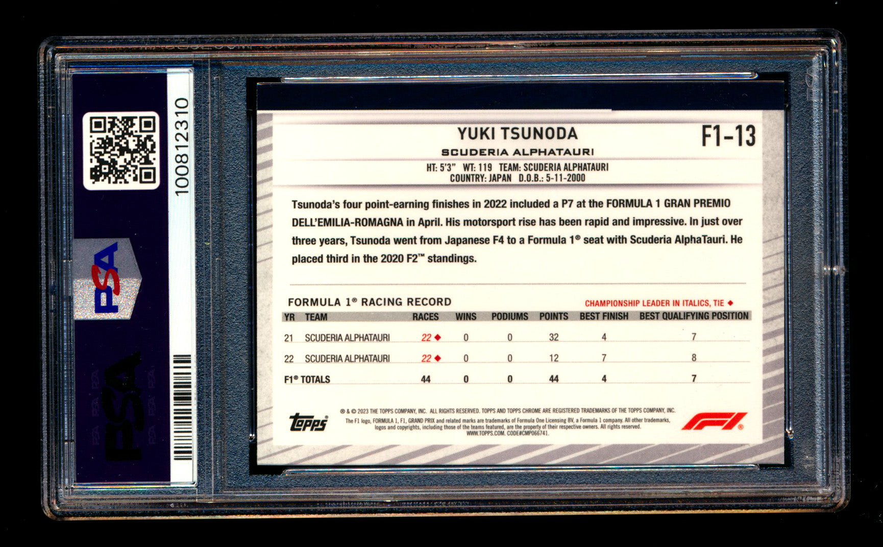 #13 Yuki Tsunoda PSA 8 | POP 2 - None Graded Higher |