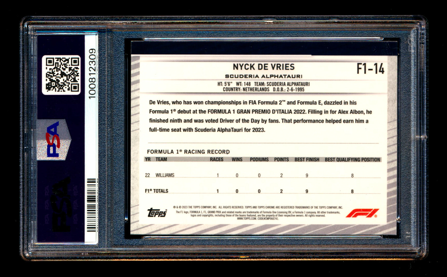 #14 Nyck De Vries RC PSA 8 | POP 1 - 2 Graded Higher |