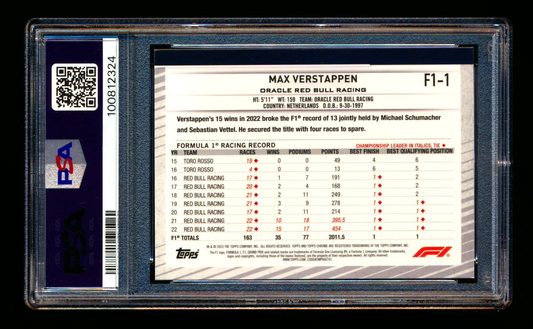 #1 Max Verstappen PSA 8 | POP 2 - 1 Graded Higher |