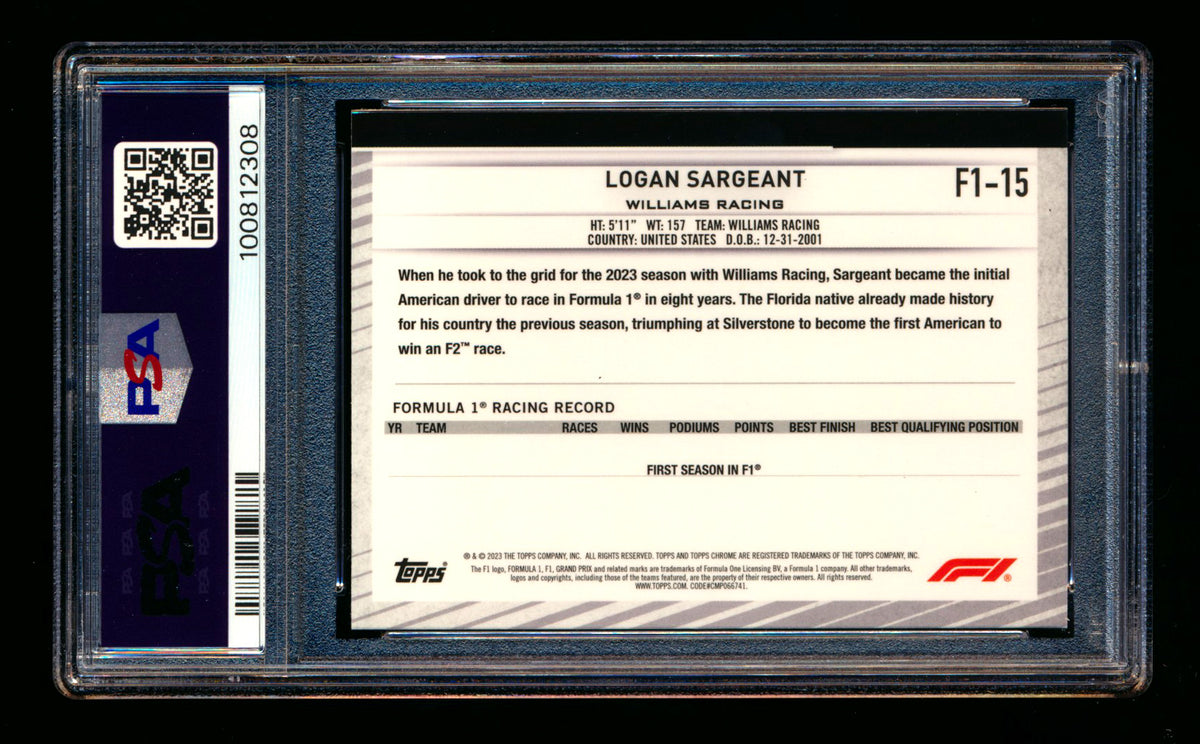 #15 Logan Sargeant RC PSA 8 | POP 1 - 1 Graded Higher |