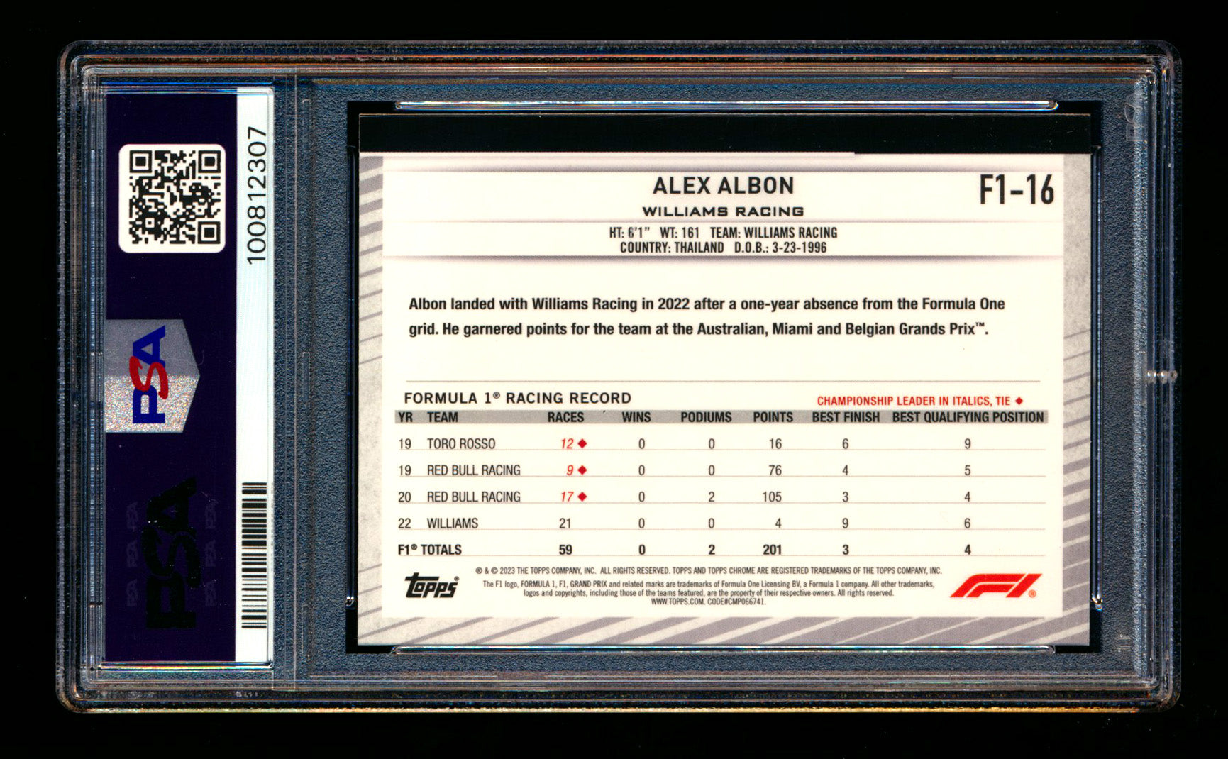 #16 Alexander Albon PSA 8 | POP 2 - 1 Graded Higher |