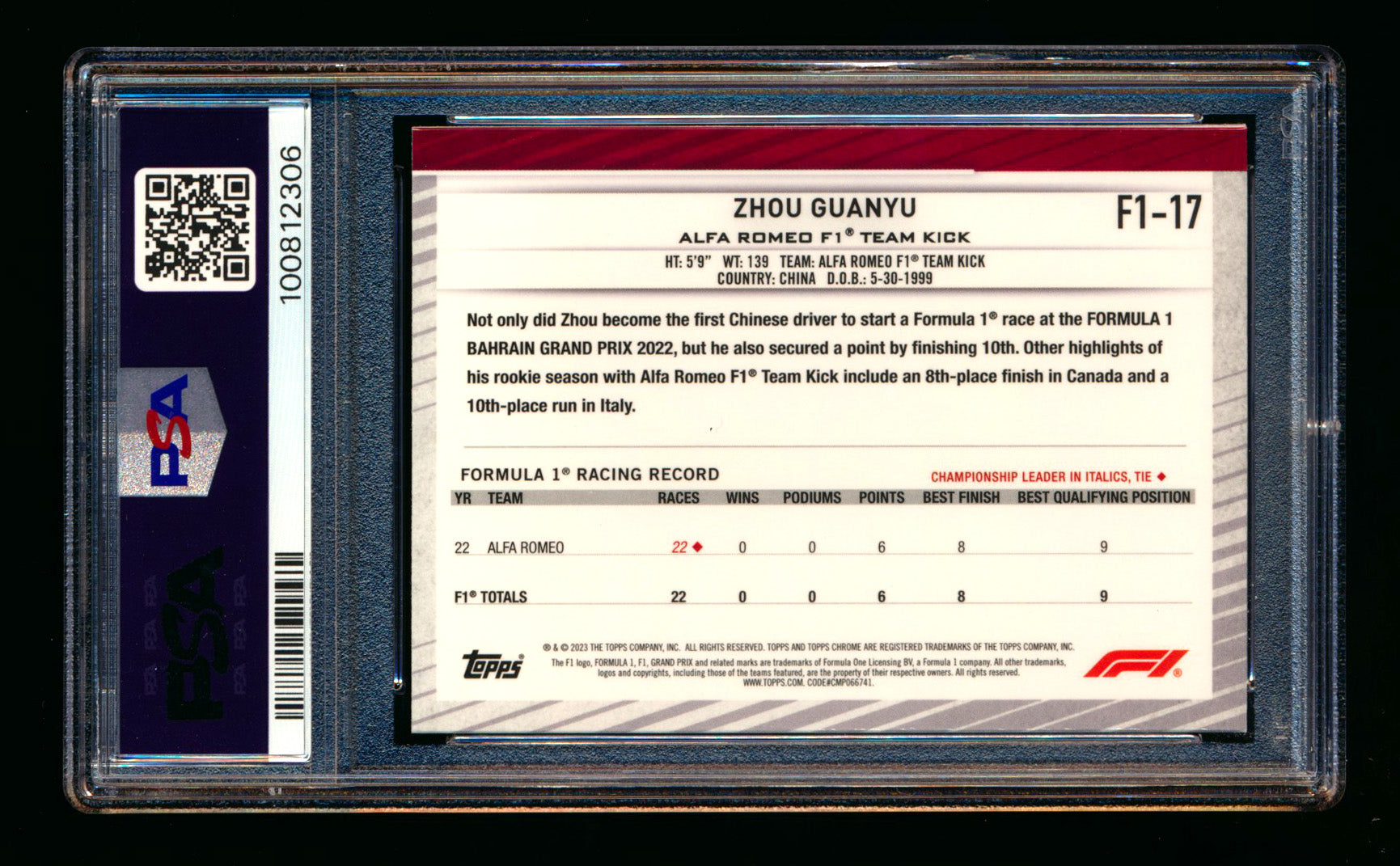 #17 Guanyu Zhou PSA 9 | POP 1 - None Graded Higher |