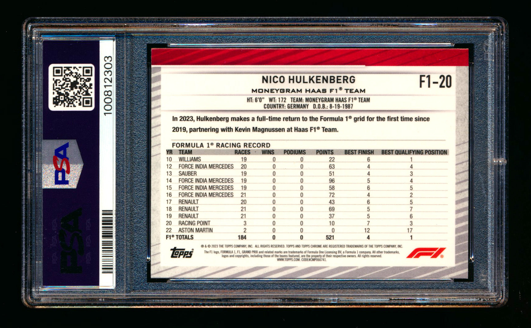 #20 Nico Hulkenberg PSA 9 (1st Year) | POP 1 - None Graded Higher |