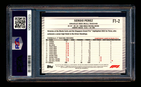 #2 Sergio Perez PSA 9 | POP 1 - 1 Graded Higher |