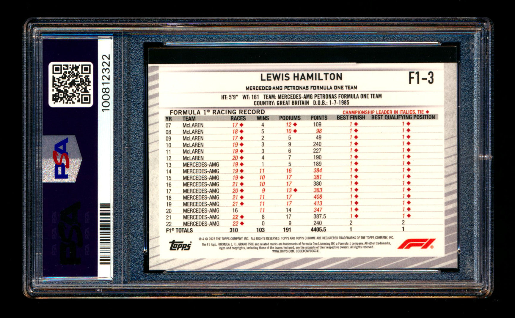 #3 Lewis Hamilton PSA 9 | POP 4 - None Graded Higher |