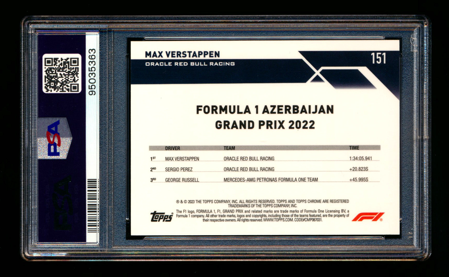 2023 Topps Chrome Sapphire F1 #151 Max Verstappen Black & White Refractor #07/15 PSA 9