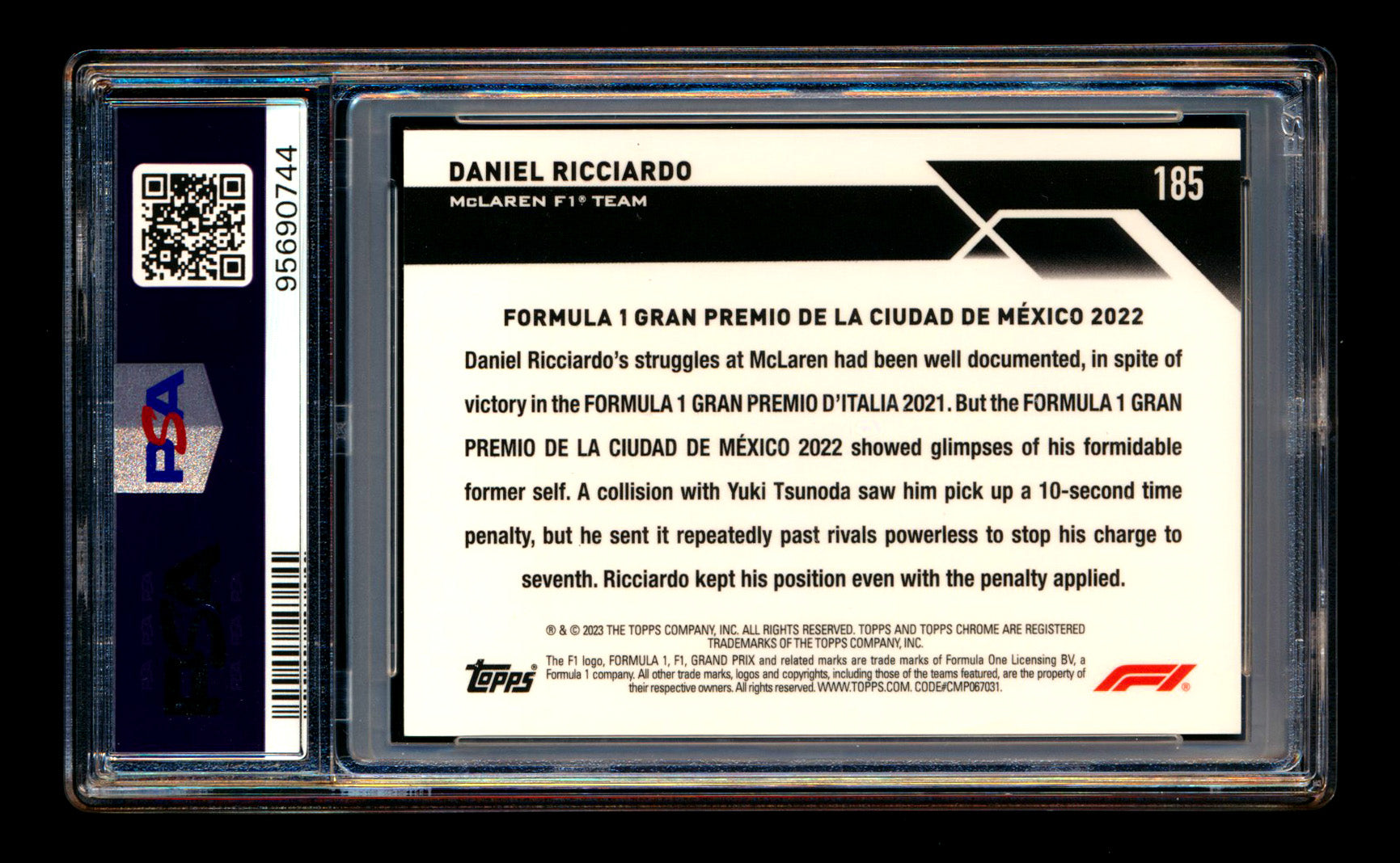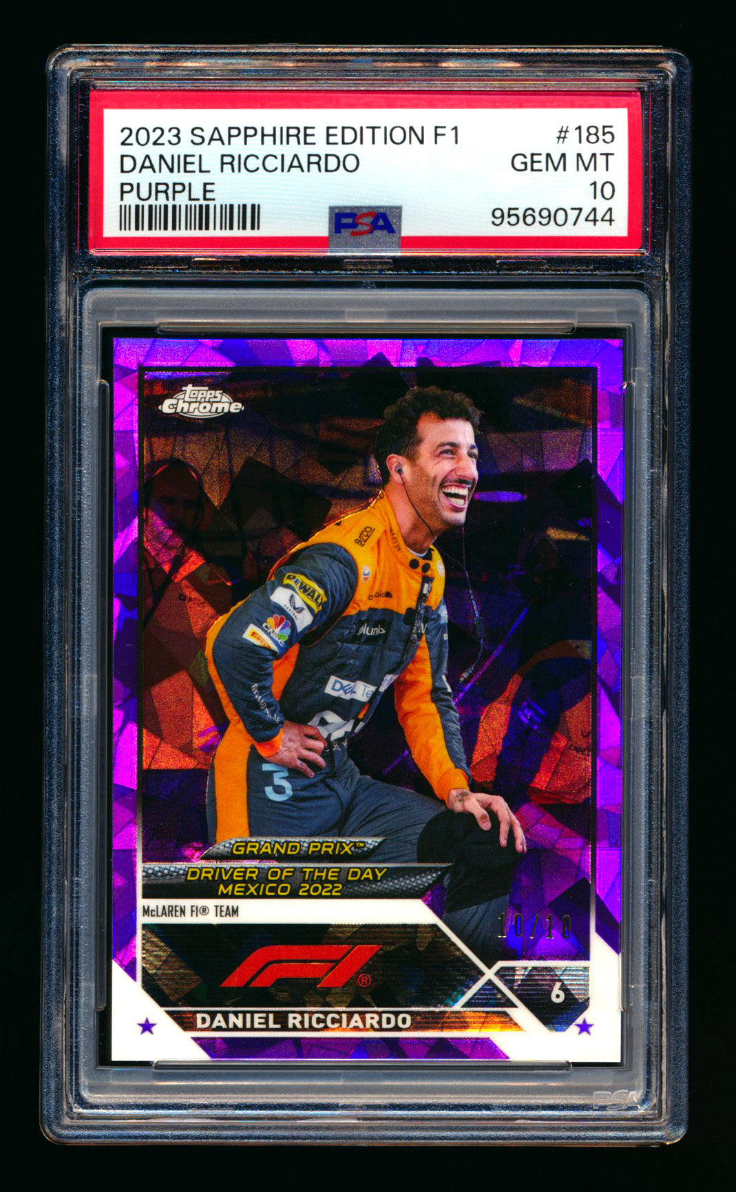 2023 Topps Chrome Sapphire F1 #185 Daniel Ricciardo Purple Refractor #10/10 PSA 10 (Last Number!) ** (SOLD eBay - $250.00 - 7/22/2025) **