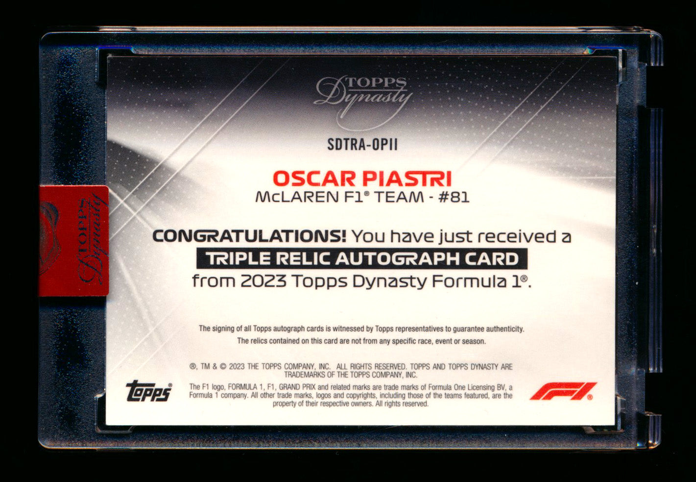 2023 Topps Dynasty F1 #SDTRA-OPII Oscar Piastri Gold ROOKIE Triple Patch Autograph #1/1