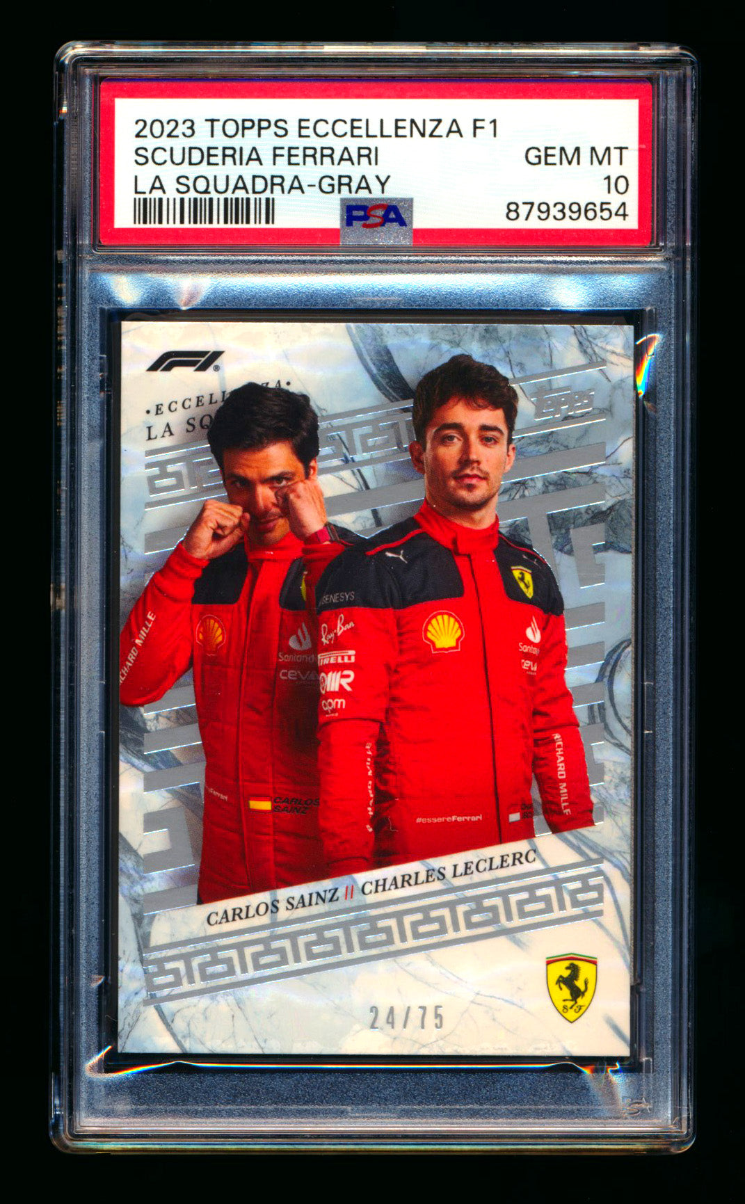 2023 Topps Eccellenza F1 La Squadra Scuderia Ferrari Charles Leclerc/Carlos Sainz Gray Parallel #24/75 PSA 10 ** (SOLD - $79.00 - 12/12/2024) **