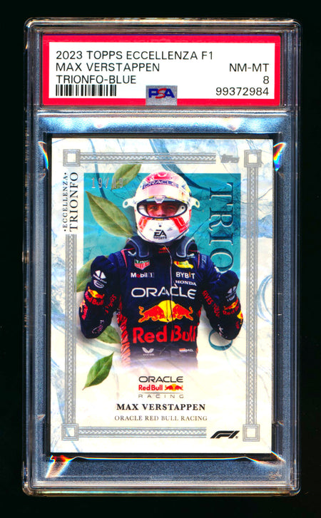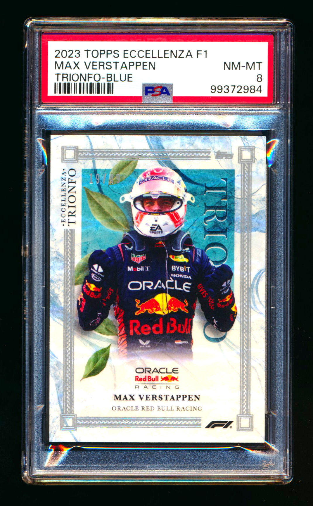 2023 Topps Eccellenza F1 Trionfo Max Verstappen Blue Parallel #19/49 PSA 8