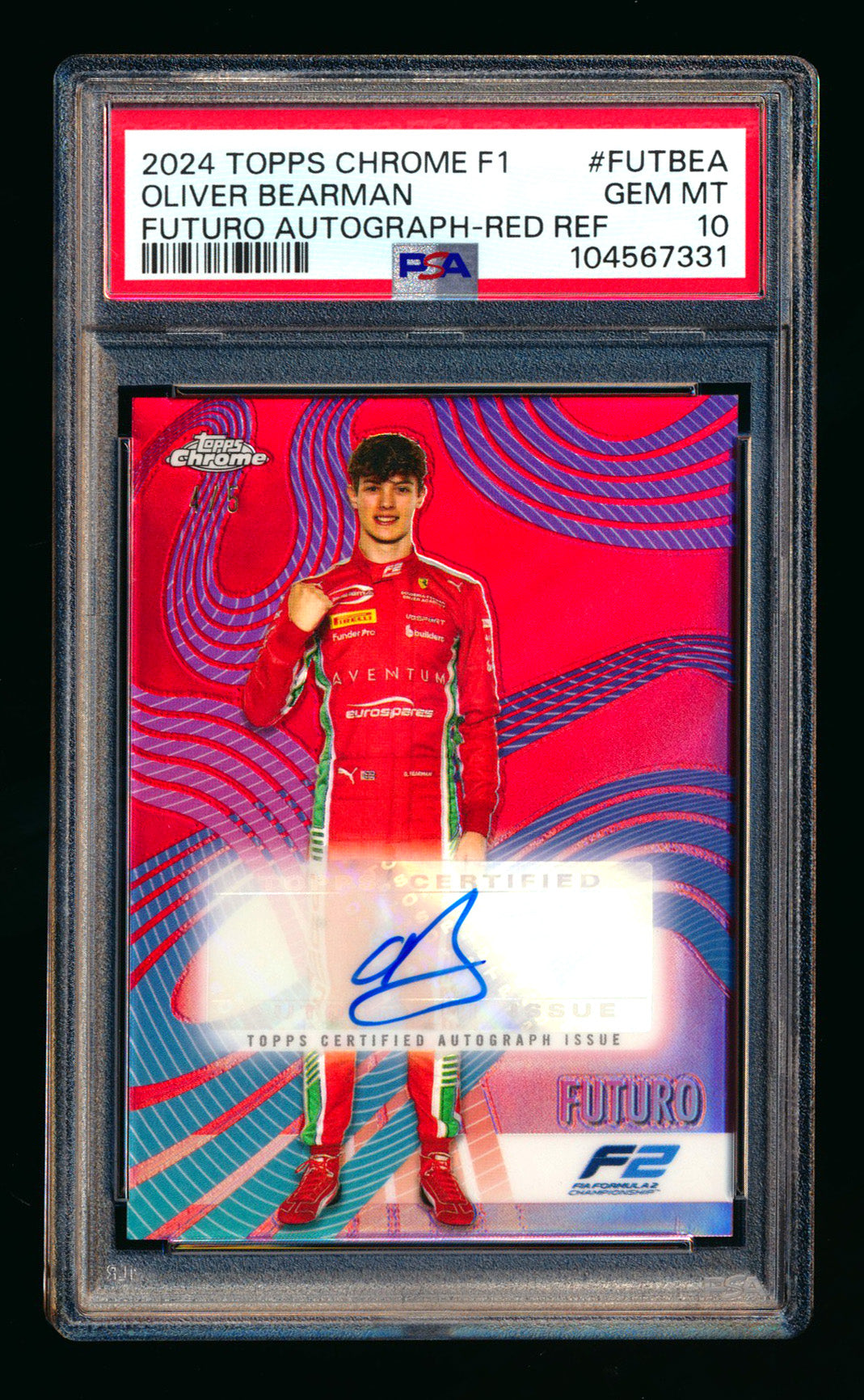 2024 Topps Chrome F1 Futuro #FUT-BEA Oliver Bearman RC Red Refractor Autograph #4/5 PSA 10 - POP 1! ** (SOLD - $1,150.00 - 9/26/2025) **