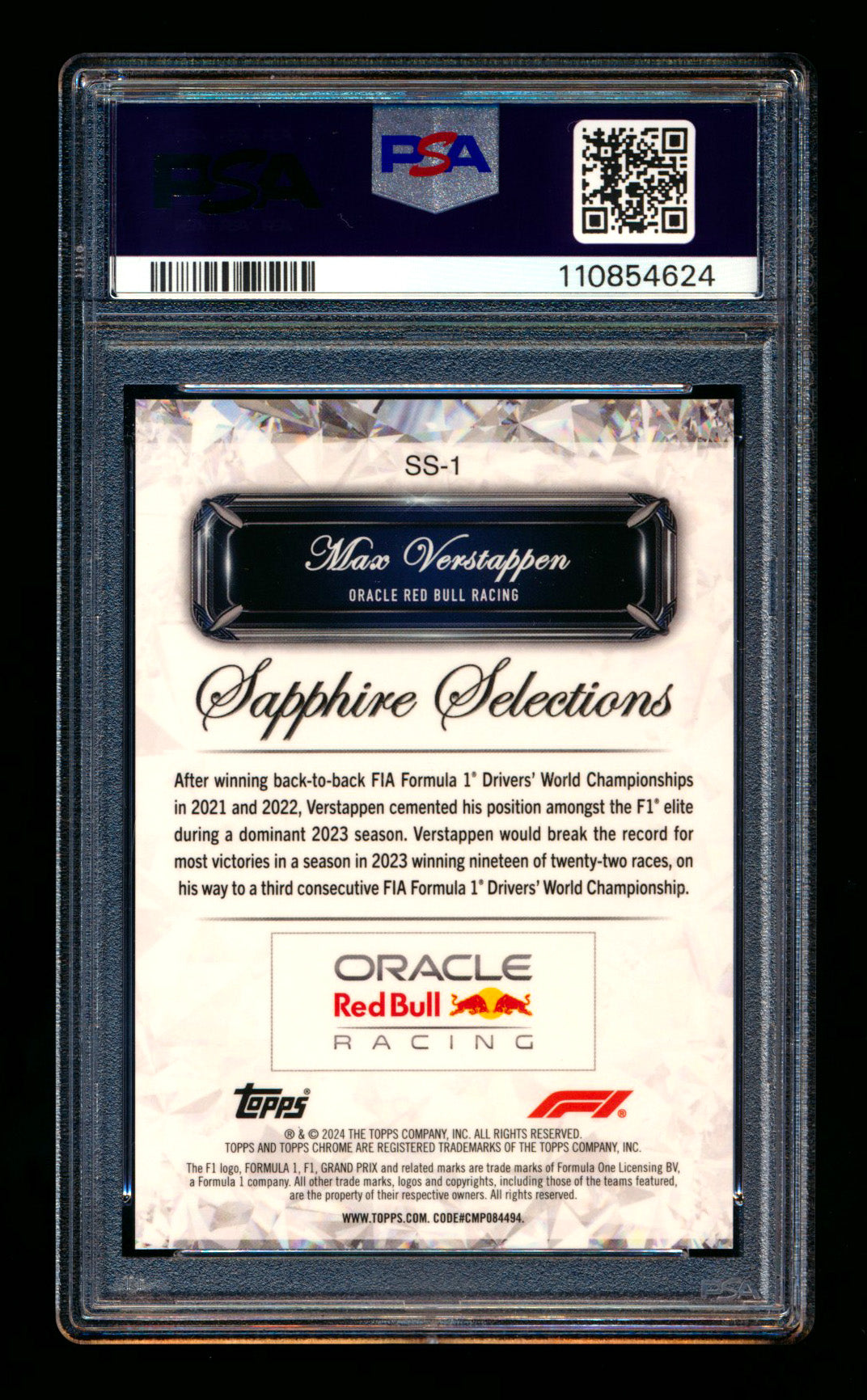 2024 Topps Chrome F1 Sapphire Selections #SS-1 Max Verstappen Refractor PSA 10 ** (SOLD eBay - $295.00 - 7/1/2025) **