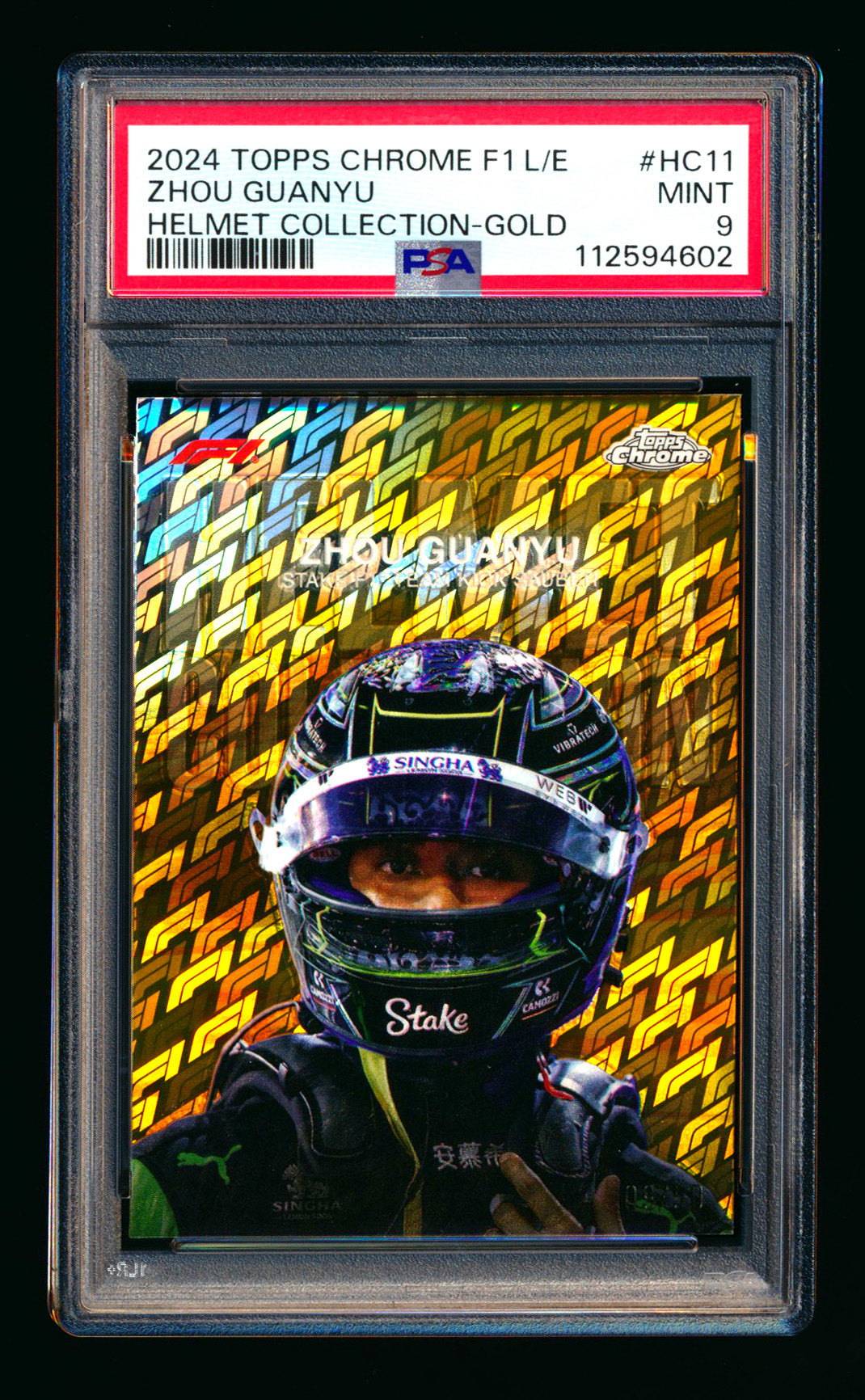 2024 Topps Chrome Logofractor F1 Helmet Collection #HC-11 Guanyu Zhou Gold Refractor #09/50 PSA 9