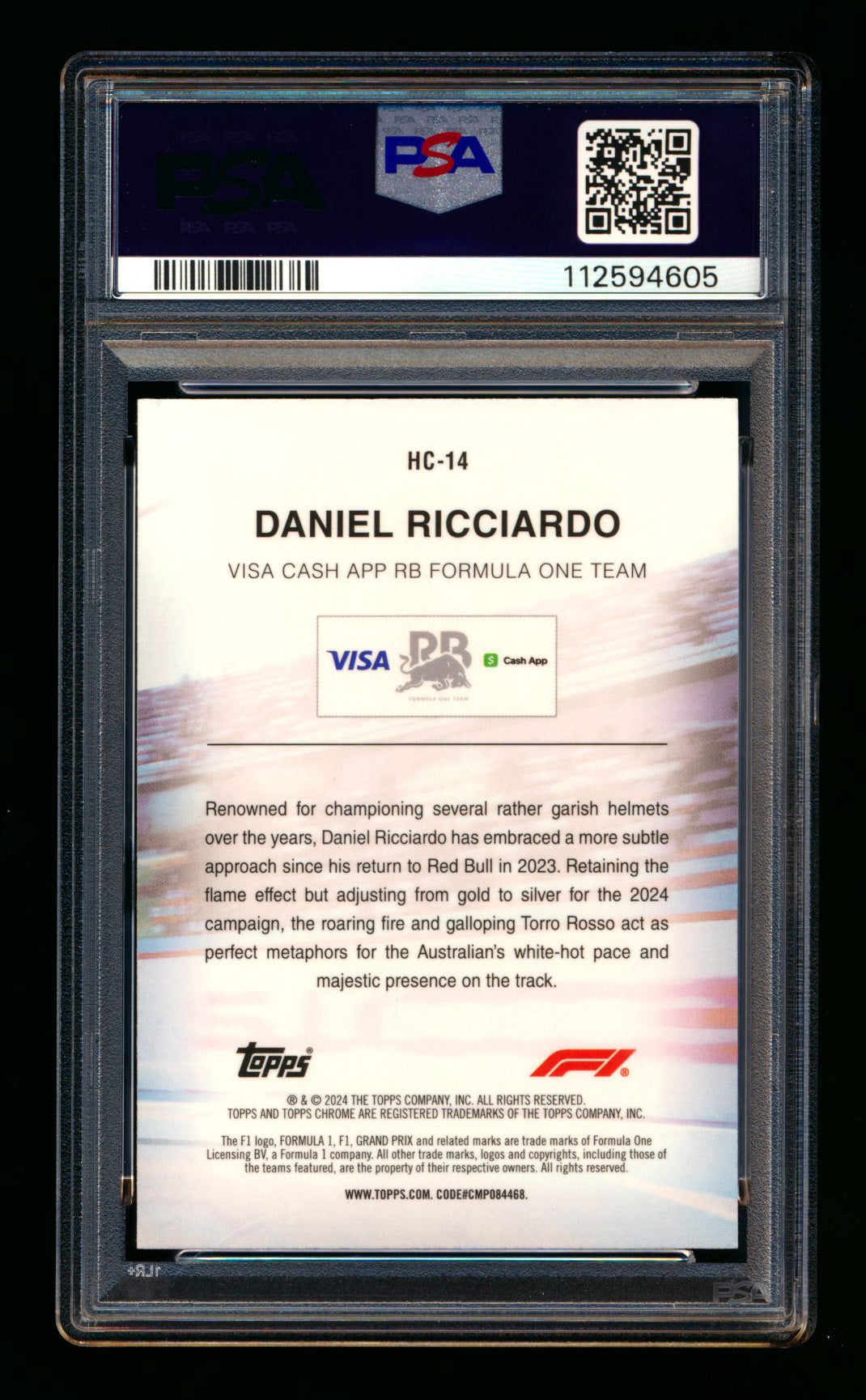 2024 Topps Chrome Logofractor F1 Helmet Collection #HC-14 Daniel Ricciardo Gold Refractor #30/50 PSA 10