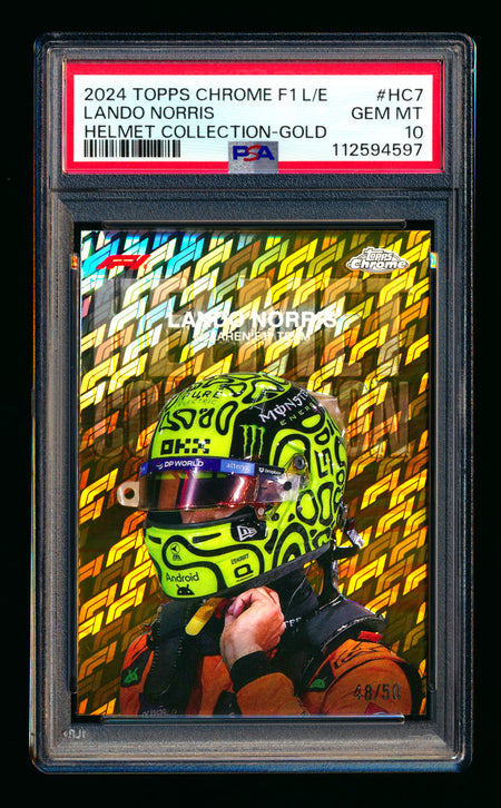 2024 Topps Chrome Logofractor F1 Helmet Collection #HC-7 Lando Norris Gold Refractor #48/50 PSA 10