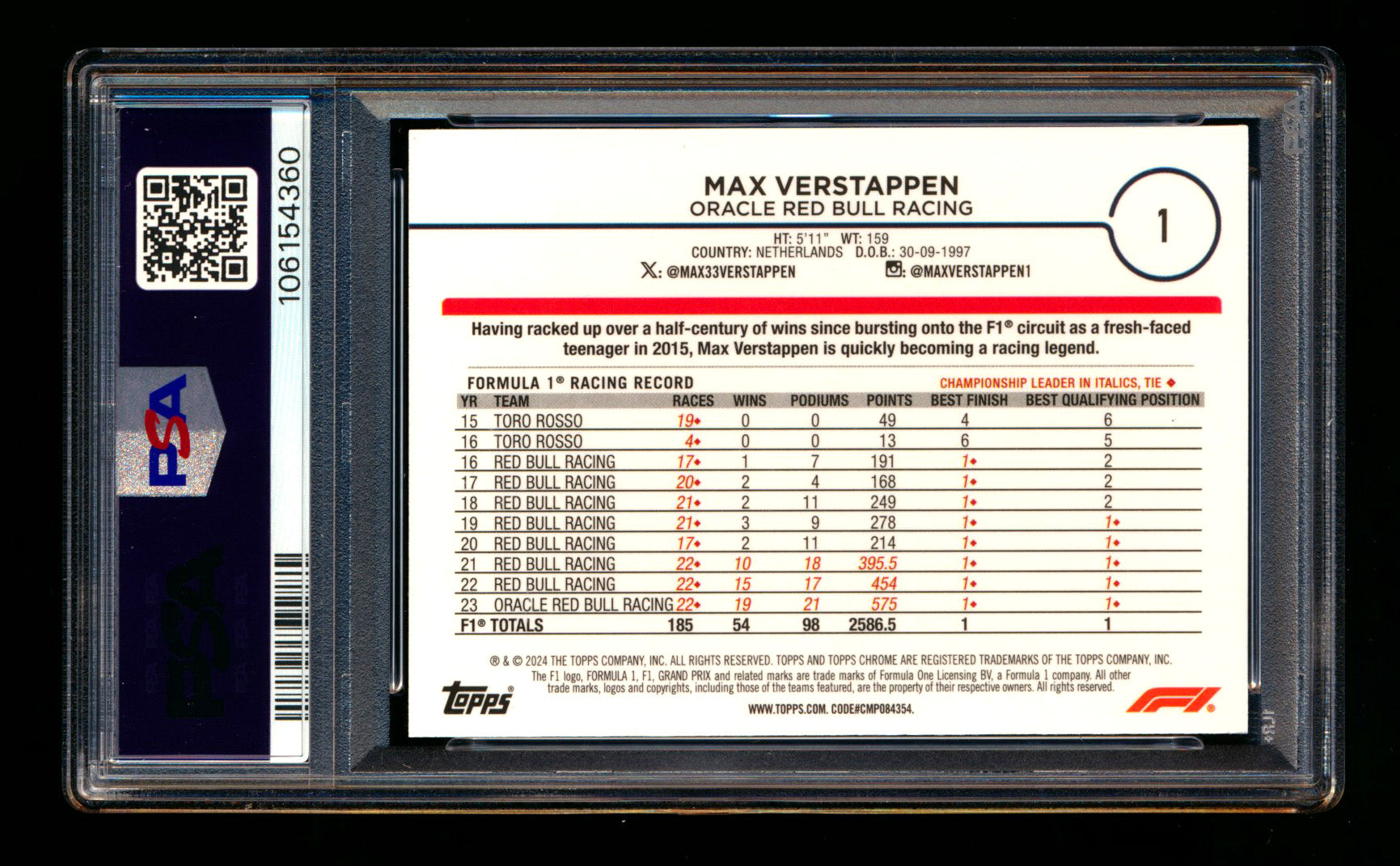 2024 Topps Chrome Sapphire F1 #1 Max Verstappen Aqua Refractor Portrait #54/99 PSA 10