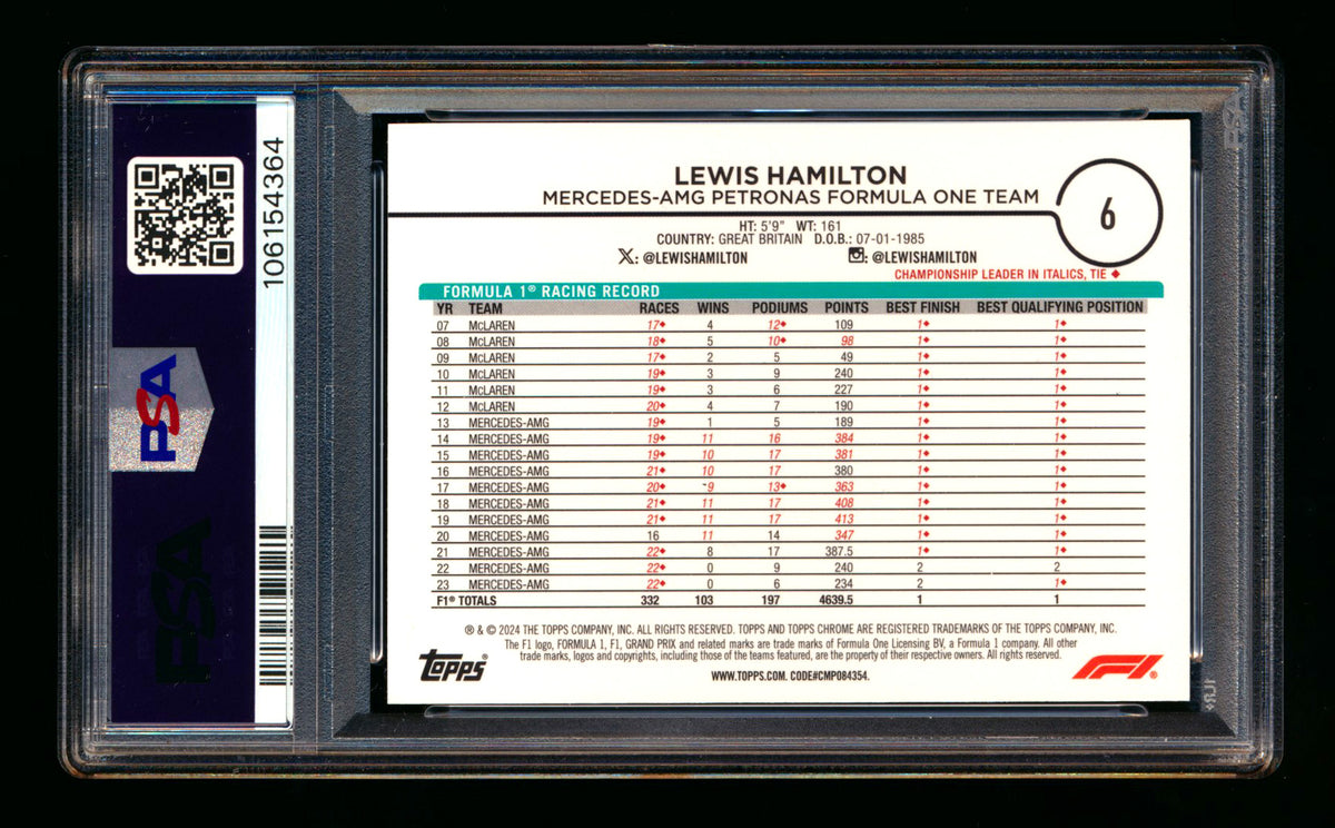 2024 Topps Chrome Sapphire F1 #6 Lewis Hamilton Aqua Refractor Portrait #38/99 PSA 9