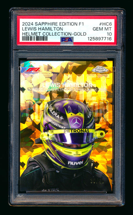2024 Topps Chrome Sapphire F1 Helmet Collection #HC-6 Lewis Hamilton Gold Refractor #30/50 PSA 10 ** (SOLD eBay - $1,795.00 - 3/19/2026) **