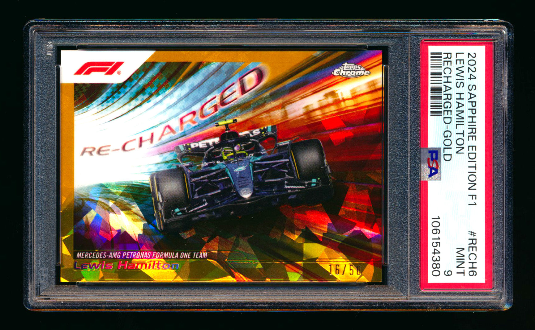 2024 Topps Chrome Sapphire F1 Recharged #RECH-6 Lewis Hamilton Gold Refractor #16/50 PSA 9
