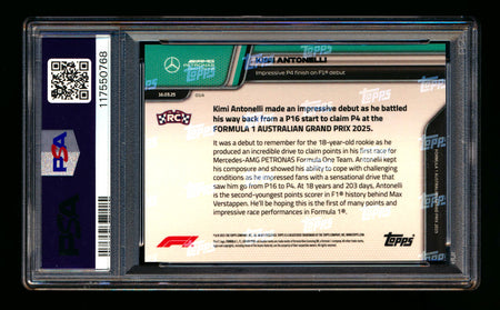 2025 Topps Now F1 #14 Kimi Antonelli RC Gold Foil #45/50 PSA 9